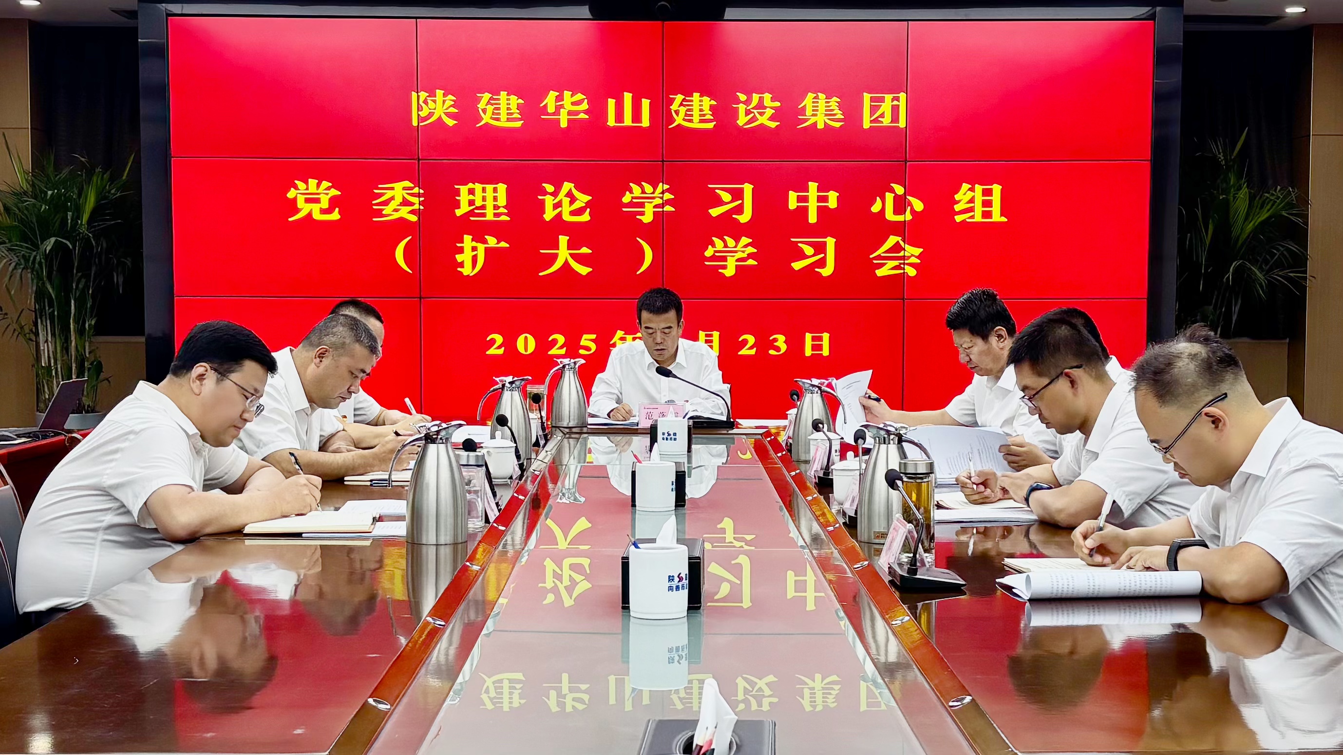 6月23日,陕建华山建设集团召开党委理论学习中心组(扩大)学习会,传达学习习近平总书记关于国有企业改革发展和党的建设的重要论述摘编和安全生产重要论述,违反中央八项规定精神、侵害群众利益问题典型案例通报和《党政机关厉行节约反对浪费条例》等。集团党委书记、董事长、总经理范蓬震主持会议并讲话。