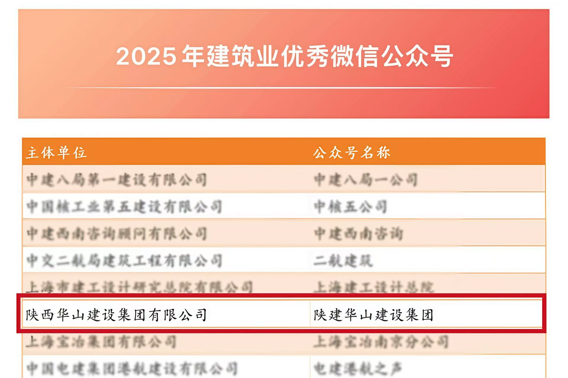 8月7日,由建筑时报社主办的2025年建筑业微信公众号运维交流研讨会在湖南省长沙市成功举办。陕建华山建设集团微信公众号连续四年荣获“全国建筑业优秀微信公众号”称号,并首次获得“全国建筑业优秀微信视频号”殊荣。